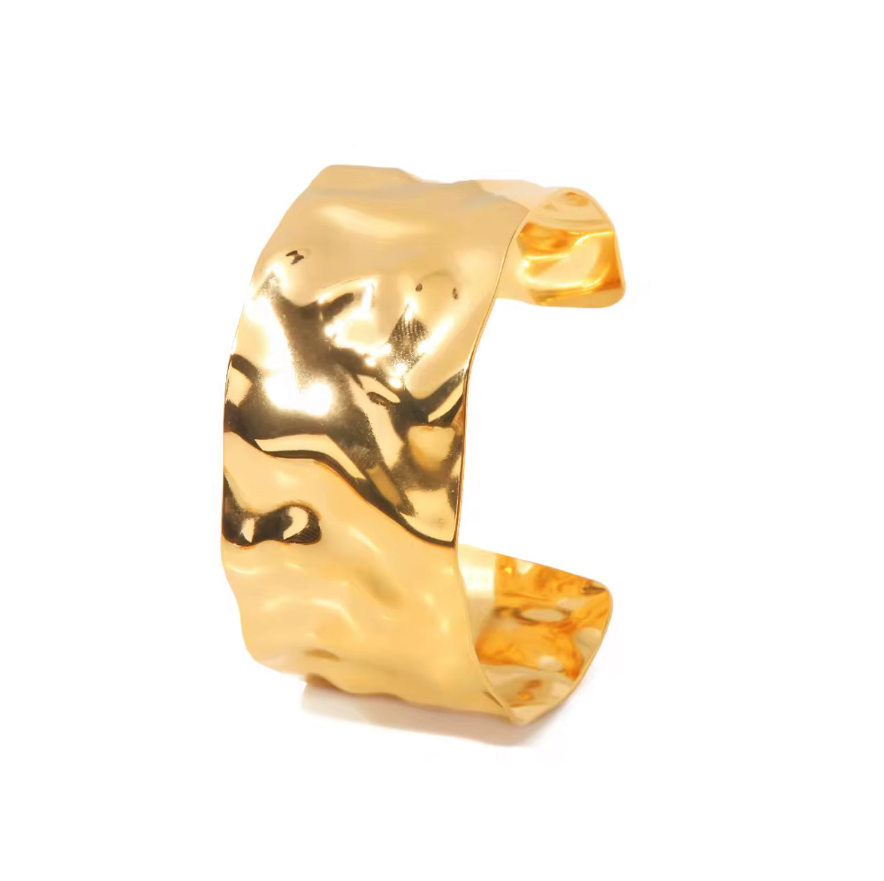 The Zaria Hammered Bangle is a bold celebration of texture and strength. With its wide, open silhouette and distinctive hammered finish, this statement piece radiates confidence and style. The name Zaria, meaning “radiance” and “princess” in various cultures, captures the regal energy of this standout bangle.