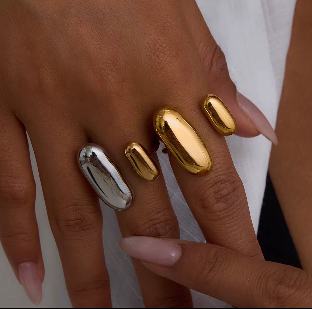 The Harmony Curve Ring blends modern minimalism with timeless elegance. Designed with a smooth, sculptural silhouette, its open form and soft curves create a striking visual balance. Whether in all gold or a radiant two-tone finish, it adds a graceful touch to any look — perfect for everyday wear or gifting.
